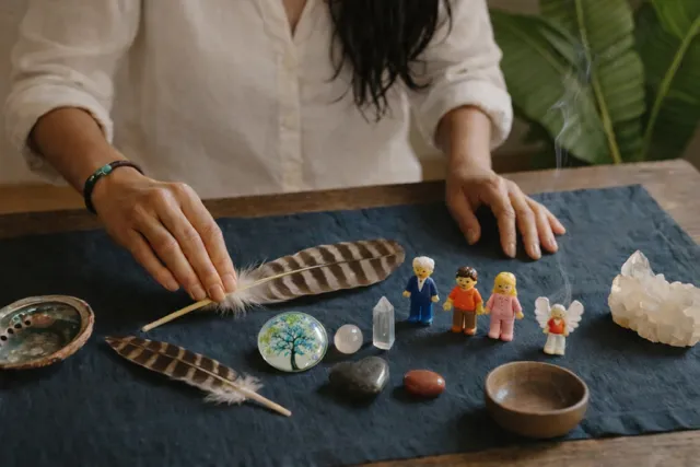 In individual sessions, we use objects, figures, simple markers or visualization to represent people, inner parts, or elements of a system. These representations are placed in relation to one another, allowing patterns to become visible — often without needing to analyze or explain them intellectually.