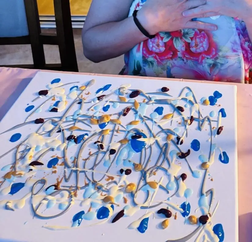 "What felt most valuable in Paint & Pour was the sense of belonging that emerged. Conversations deepened naturally, there was joy and laughter, and the painting I brought home now carries that same calm and connection — a quiet reminder of the community we experienced together".