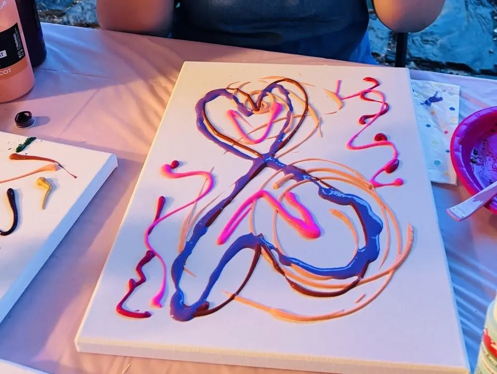 Paint & Pour is for people who want to create something meaningful together — whether to celebrate a birthday or special moment, mark a transition, or explore something that’s quietly asking for attention.